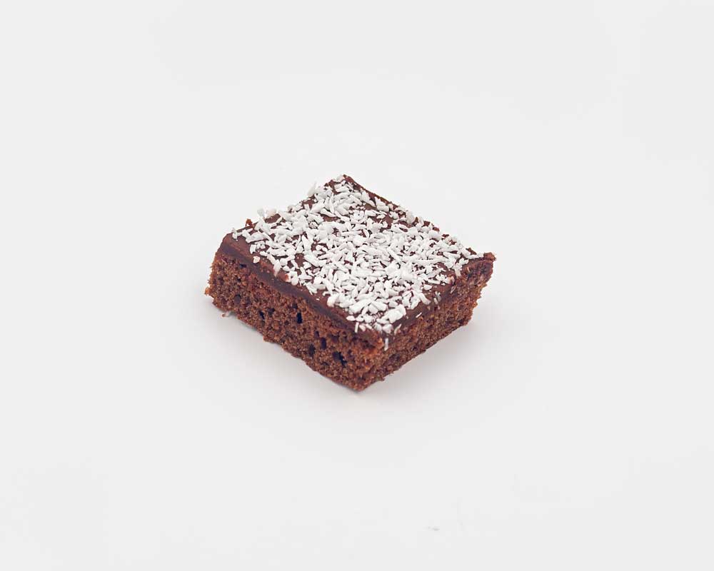 VETEMJÖL, socker, margarin: (vegetabiliska oljor (palm, kokos, raps); vatten; salt (1,5%); emulgeringsmedel: mono- och diglycerider av fettsyror, lecitin (raps); surhetsreglerande citronsyra; naturlig arom; färgämne betakaroten), kaffe, kakaopulver (kakao, surhetsreglerandemedel: kaliumkarbonat (E501i)), kokos, KORNMALTMJÖL, potatisstärkelse, ÄGG, VISPGRÄDDE (PASTÖRISERAD GRÄDDE, stabiliseringsmedel (karragenan)), vatten, ethylvanillin, Bakpulver: (E450, E500, majsstärkelse).